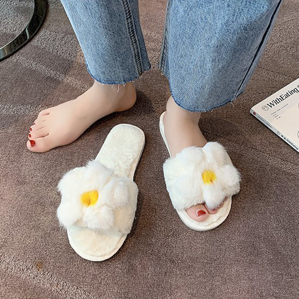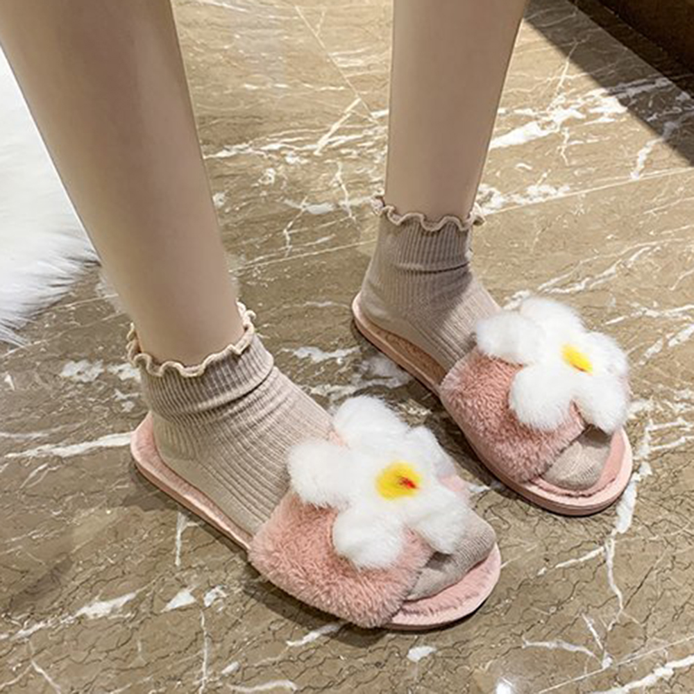 Women Flower Decor Non Slip Soft Comfy Plush Cotton Slippers