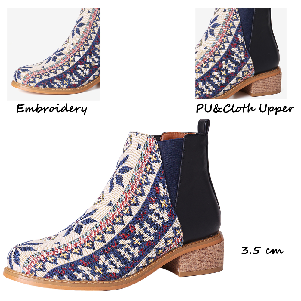 Women Folkways Printing Stitching Casual Block Heel Ankle Boots