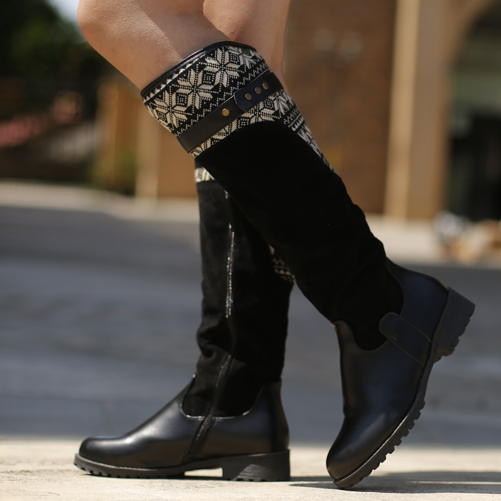 Women Casual Warm Flowers Letter Pattern Knee High Boots