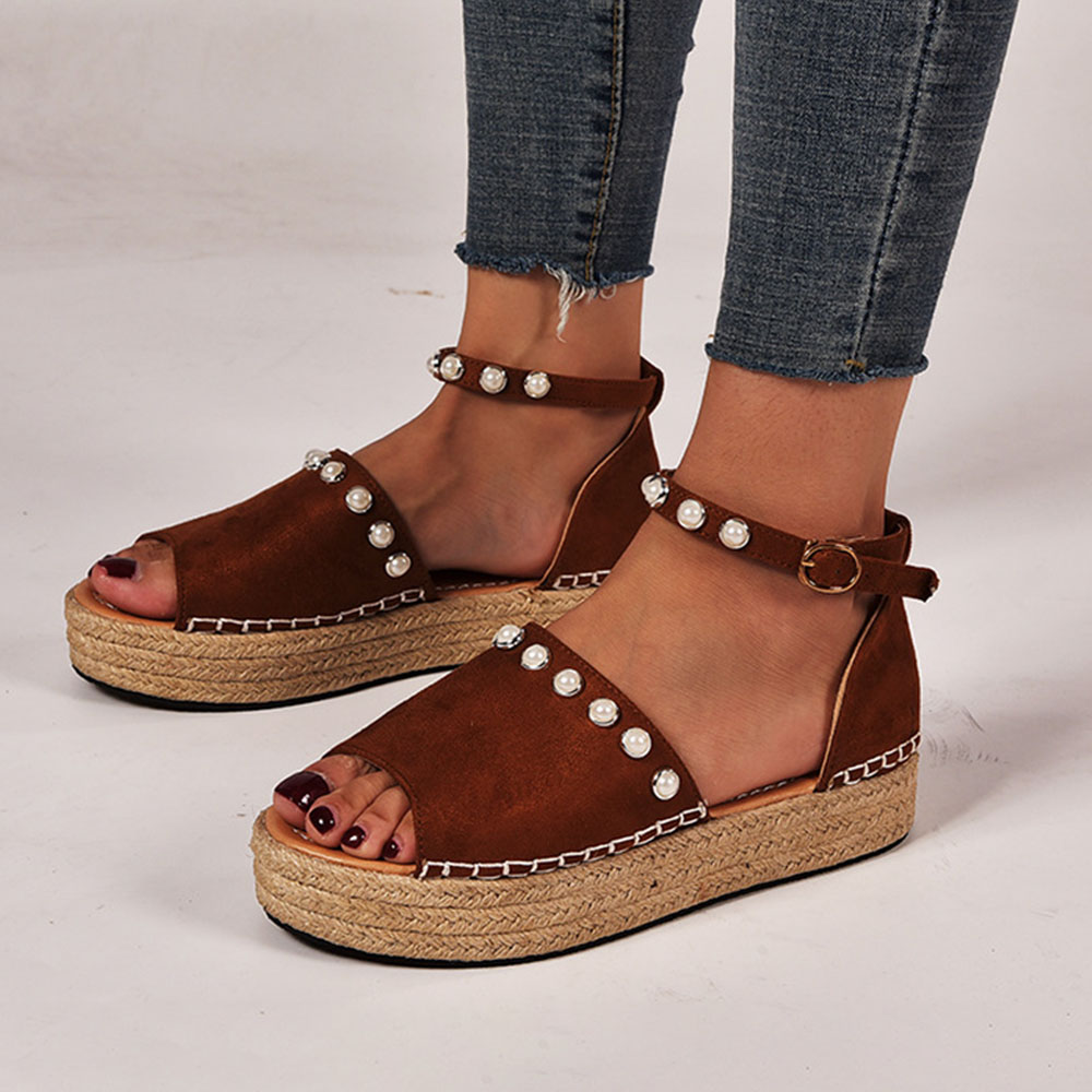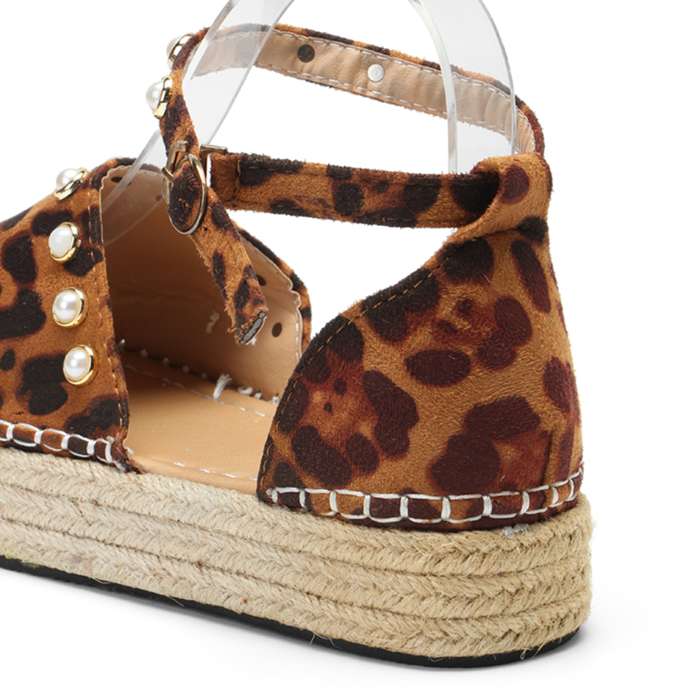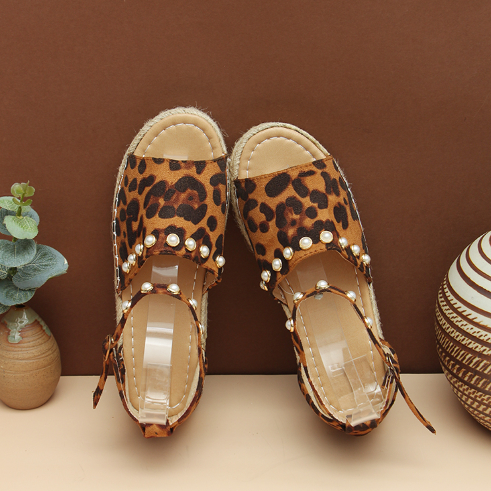 Women Suede Leopard Print Solid Beading Lace Simple Casual Sandals