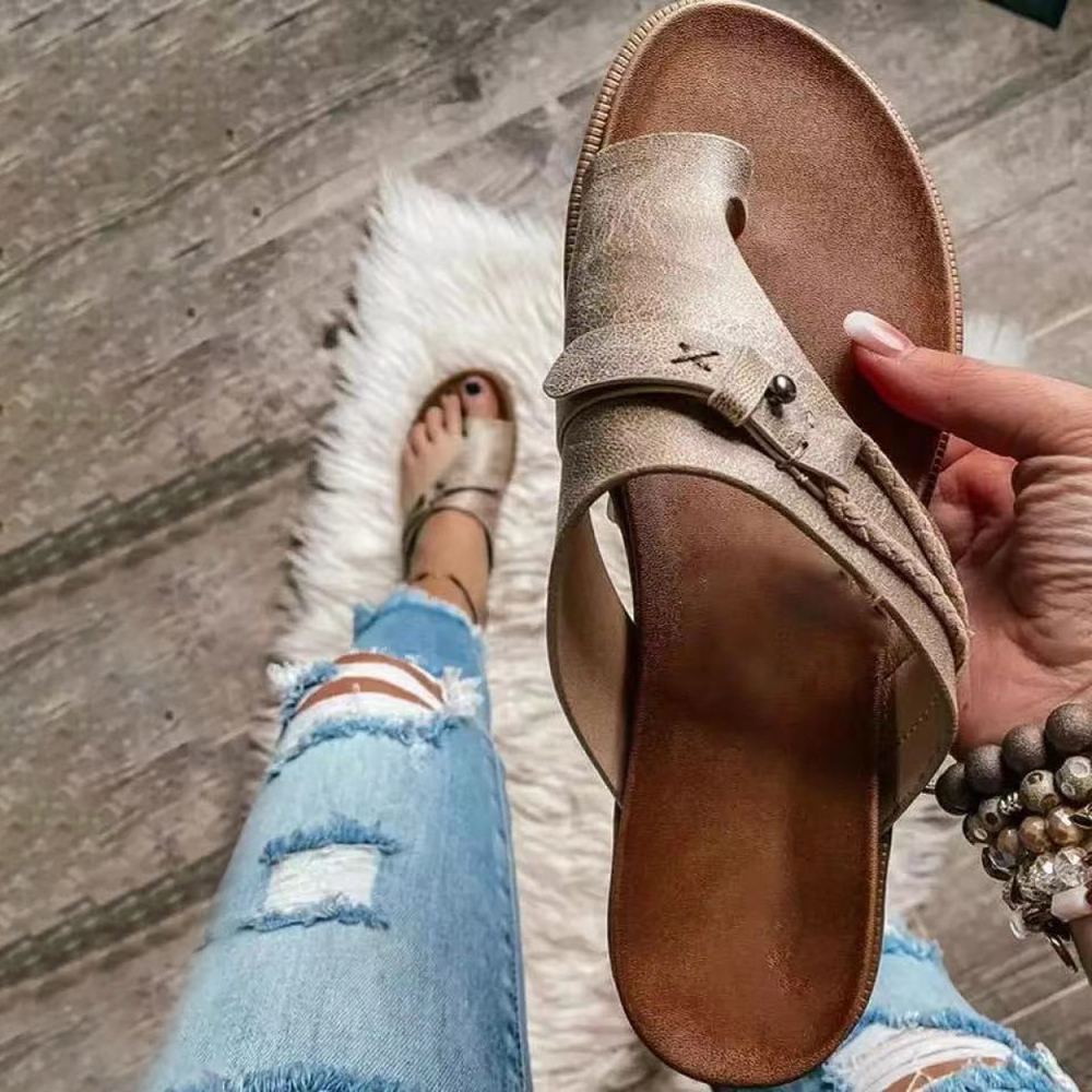 Women Vintage Rivet Woven Laces Solid Clip Toe Flat Casual Slippers