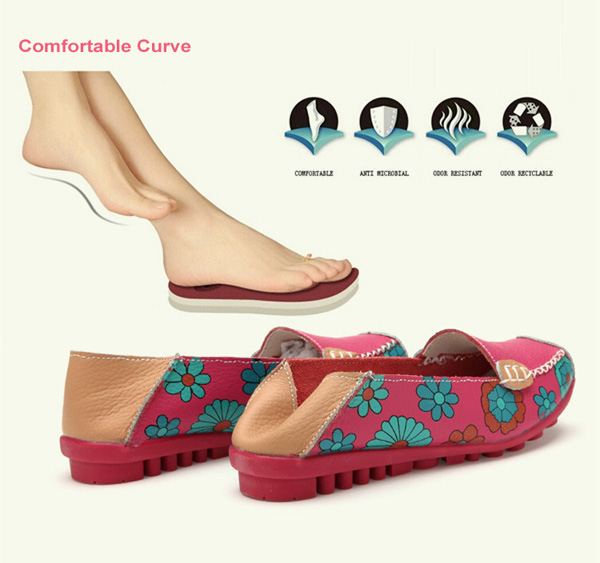 Big Size Women Flower Floral Leather Loafers Moccasins Flats Soft Ballet Shoes Round Toe Flats