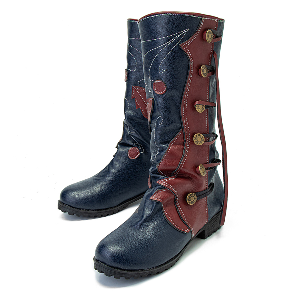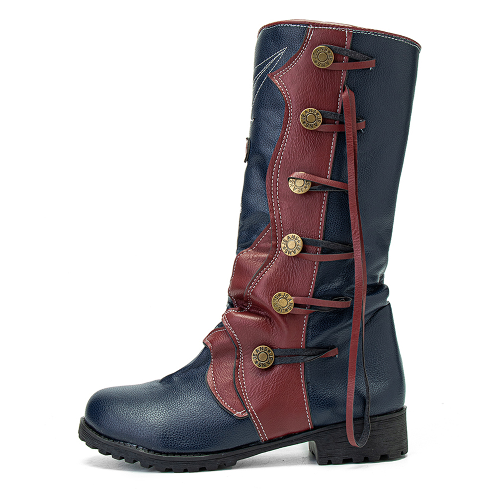 Women Leaf Pattern Autumn Winter Warm Wear Resistant Round Head Mid-calf Boots
