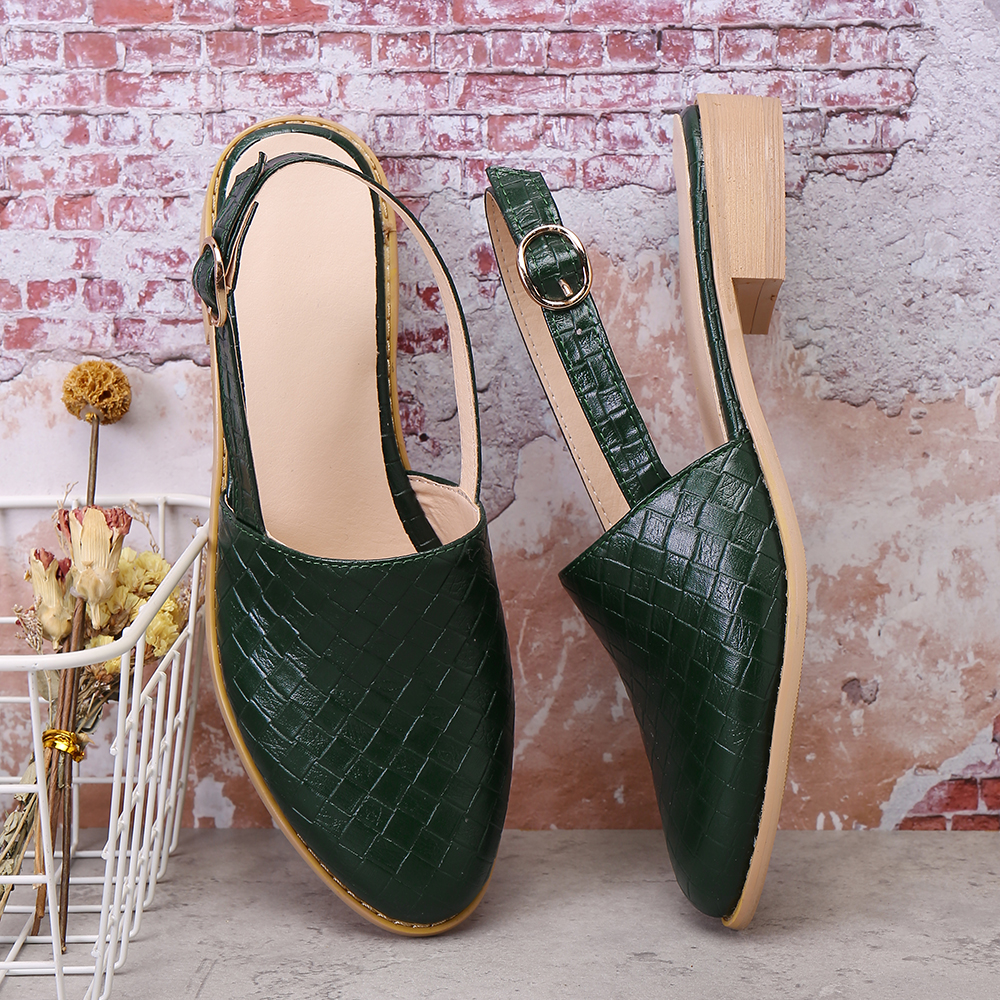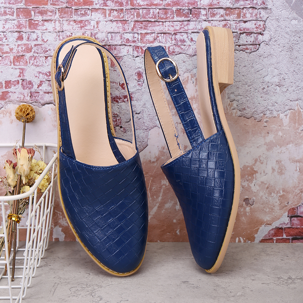 Large Size Comfy Braided Pointed Toe Buckle Backless Flats for Women