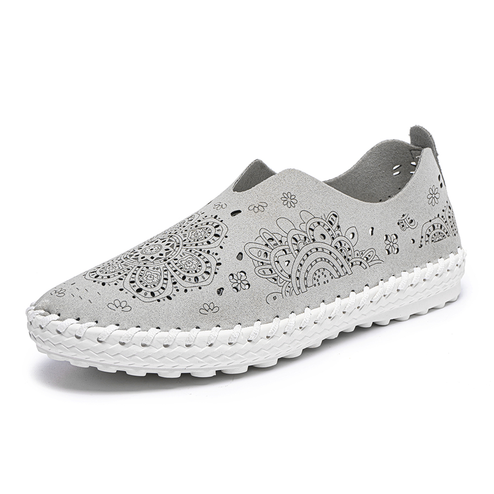 Women Brief Floral Hollow out Round Toe Flat Stitching Loafers Shoes