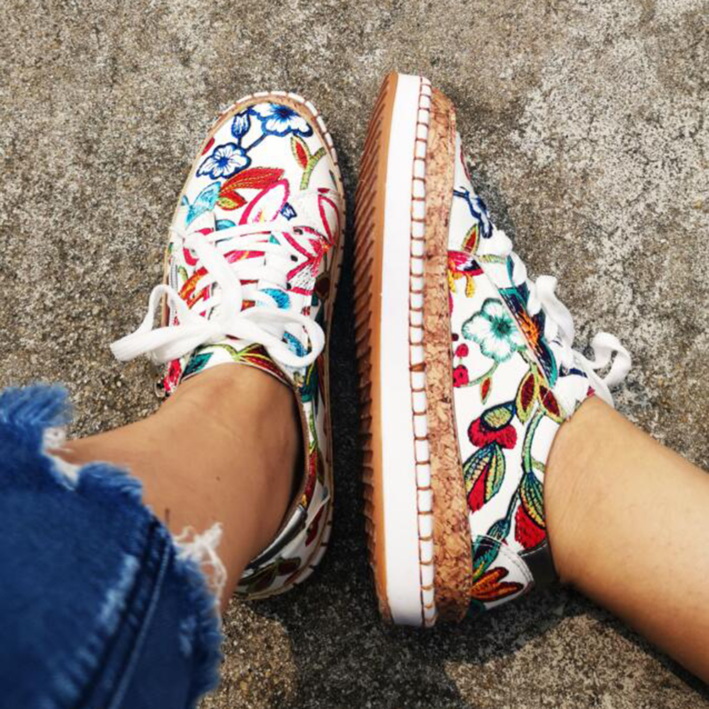 Women Folkways Printing Comfy Non Slip Casual Chunky Flats Shoes