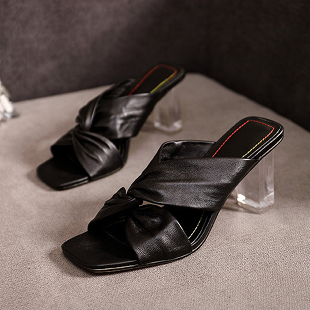 Women Comfy Gold & Silver Clear Heeled Slippers