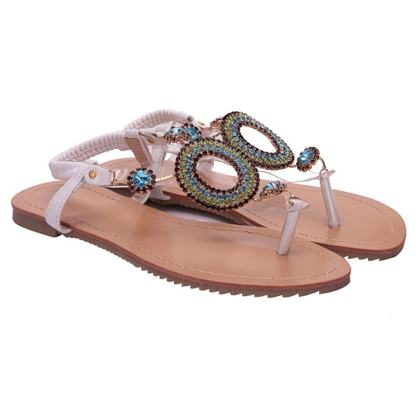 Rhinestone Beaded Elastic Flip Flop Casual Flat Sandals