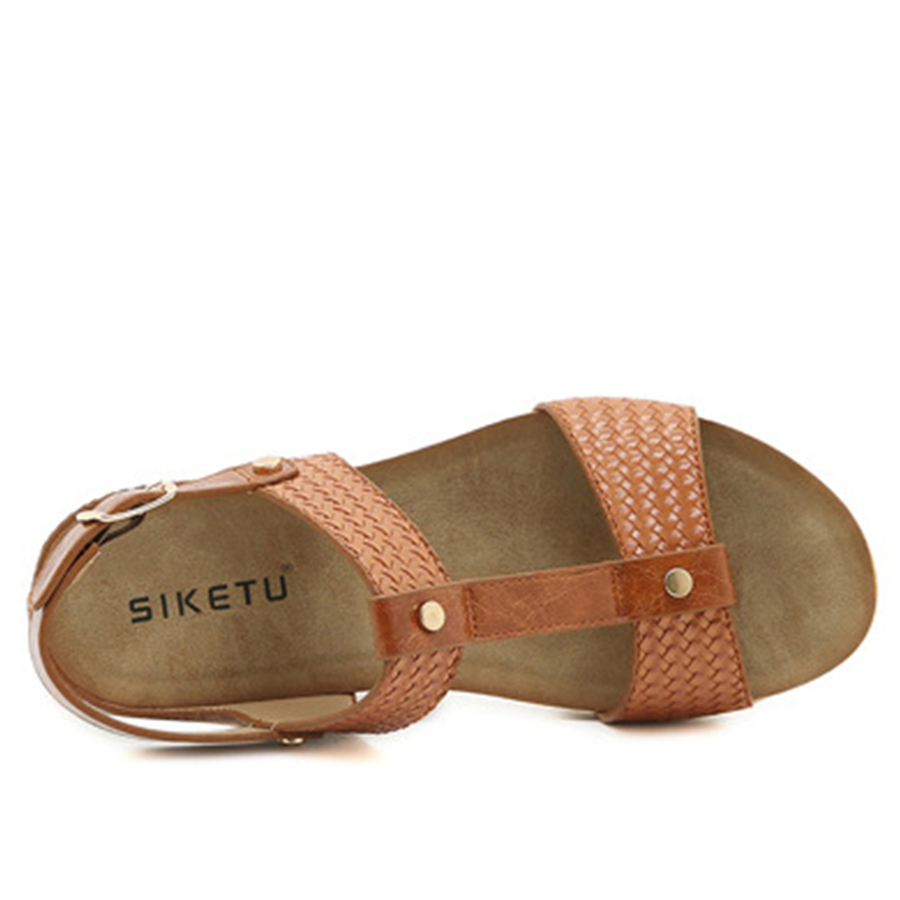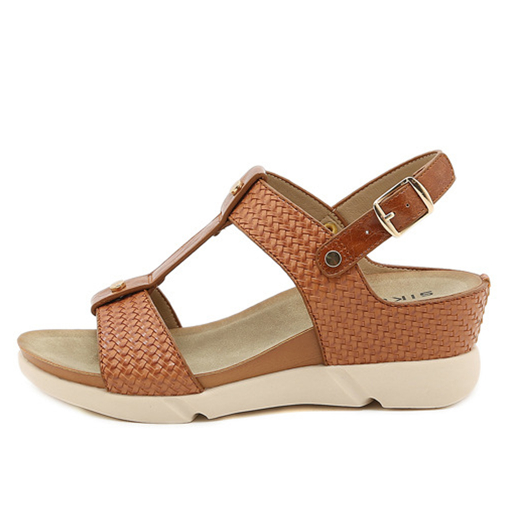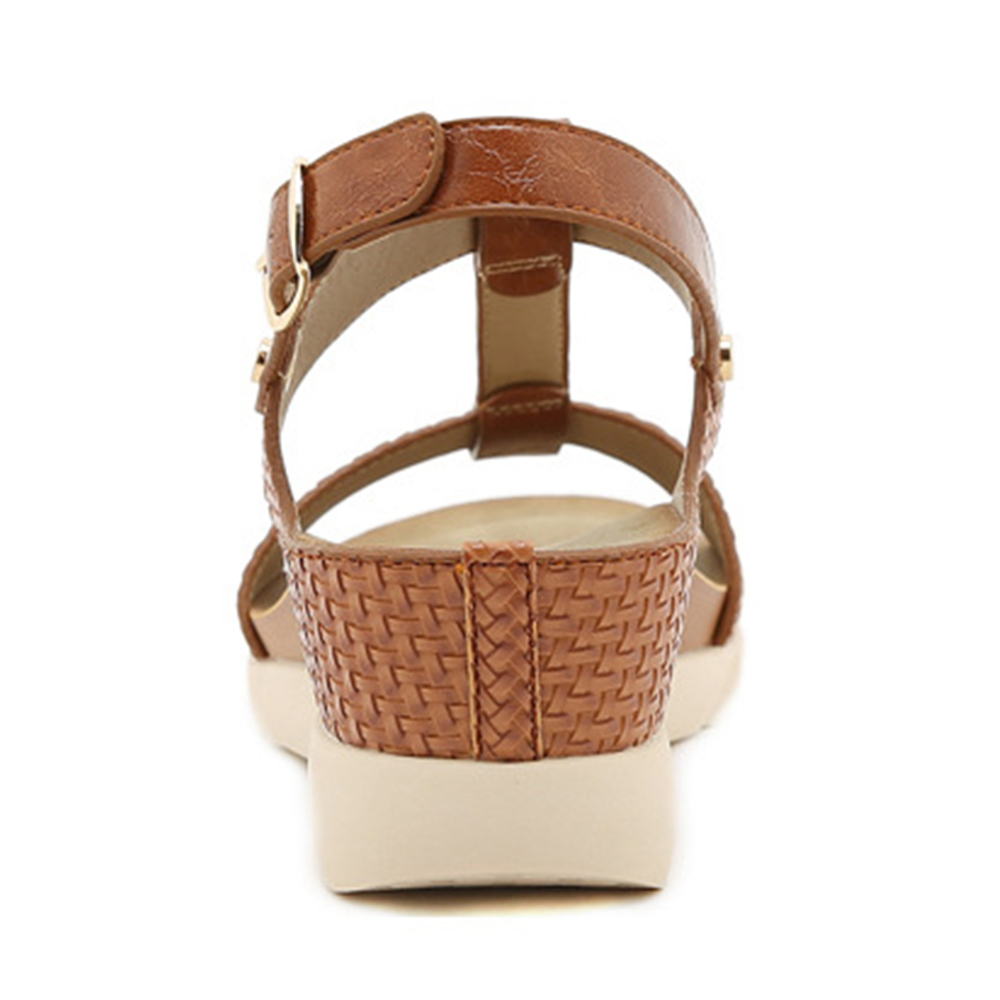 Women Casual Vacation Comfy Woven Design T-Strap Wedges Sandals