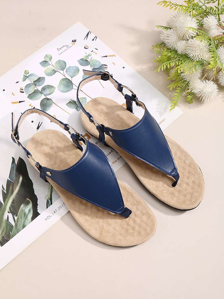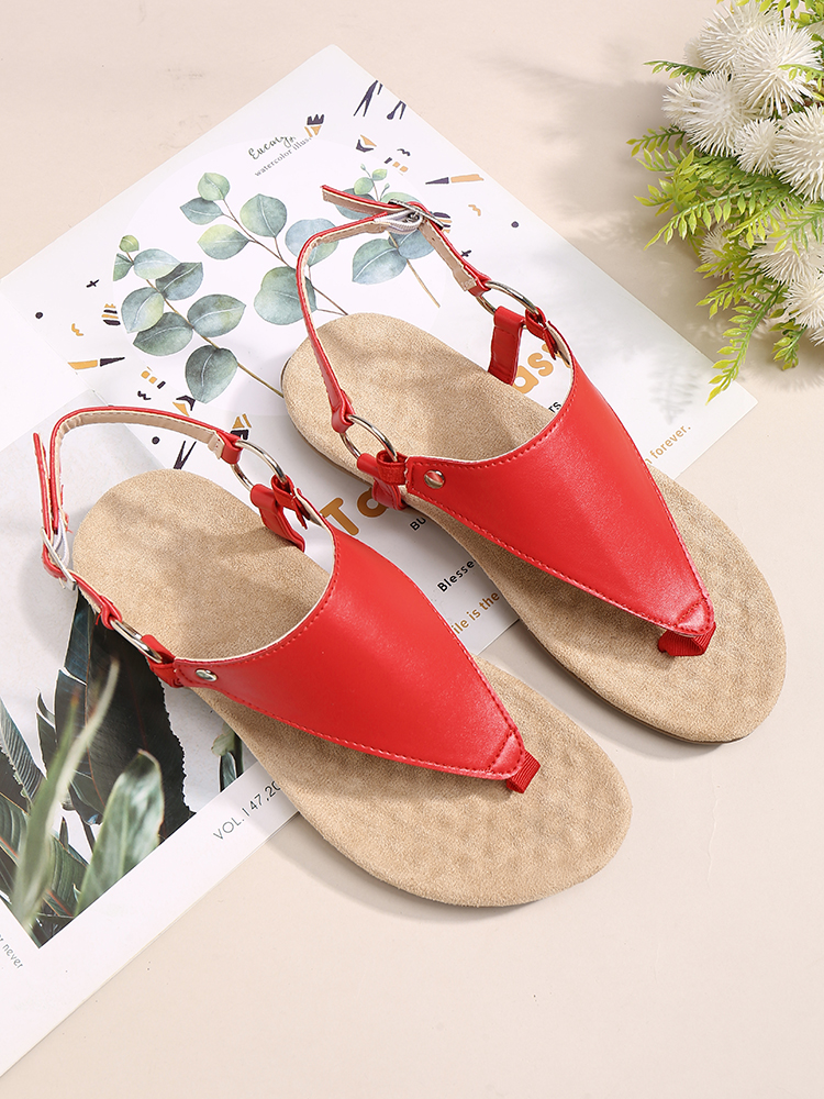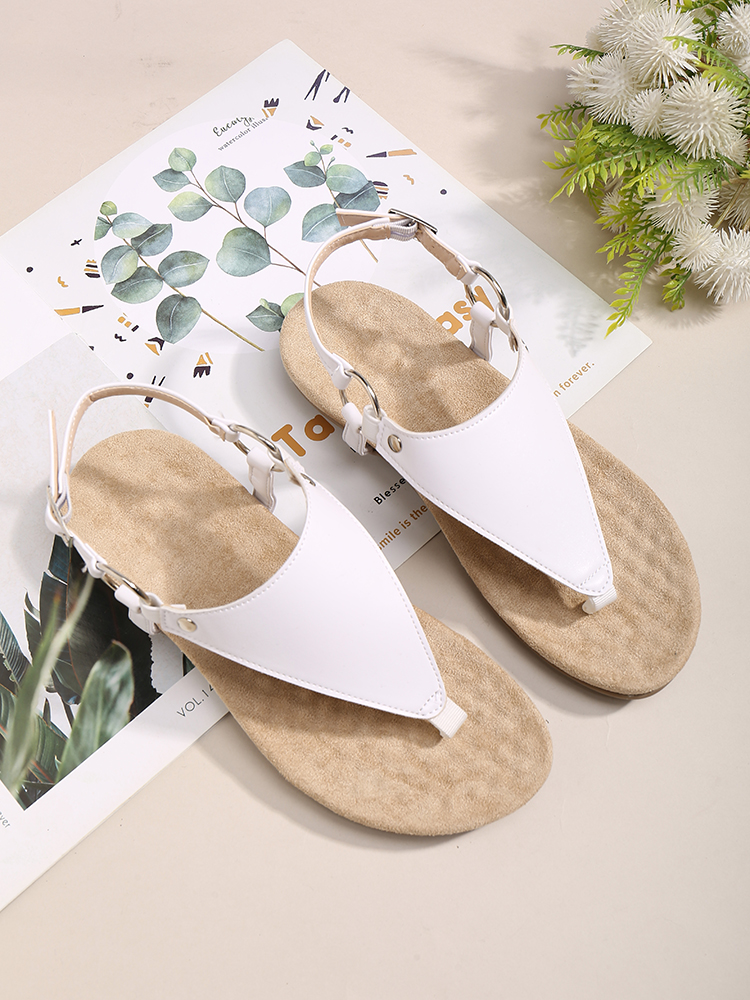 Women Metal Buckle Flip Flops Casual Flat Slingback Sandals