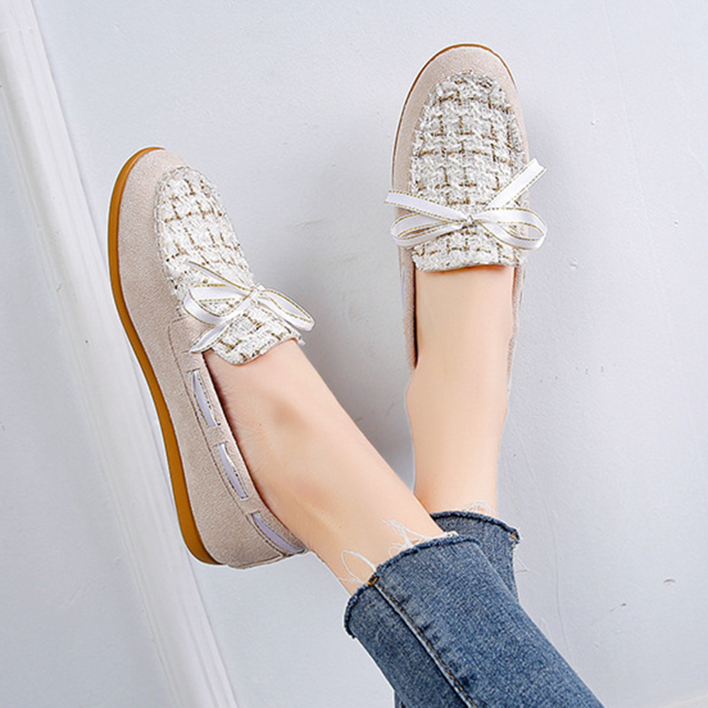 Women Butterfly Knot Decor Small Fragrance Wind Comfy Breathable Casual Slip On Loafers