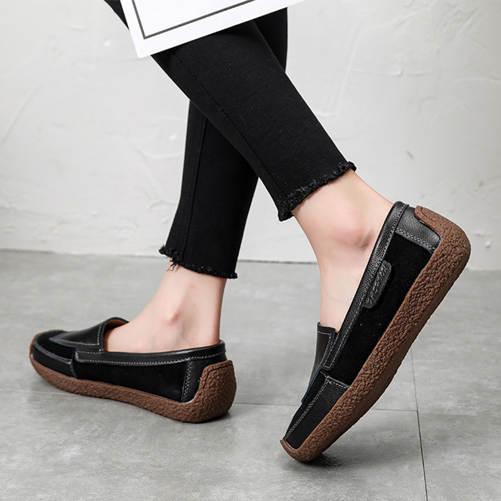 Women Comfy Leather Splicing Soft Slip On Flat Loafers