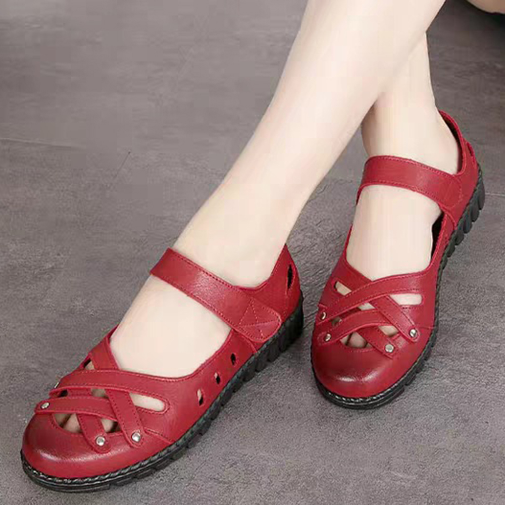 Women Cross Hollow-out Soft Sole Non-slip Hook Loop Flat Sandals