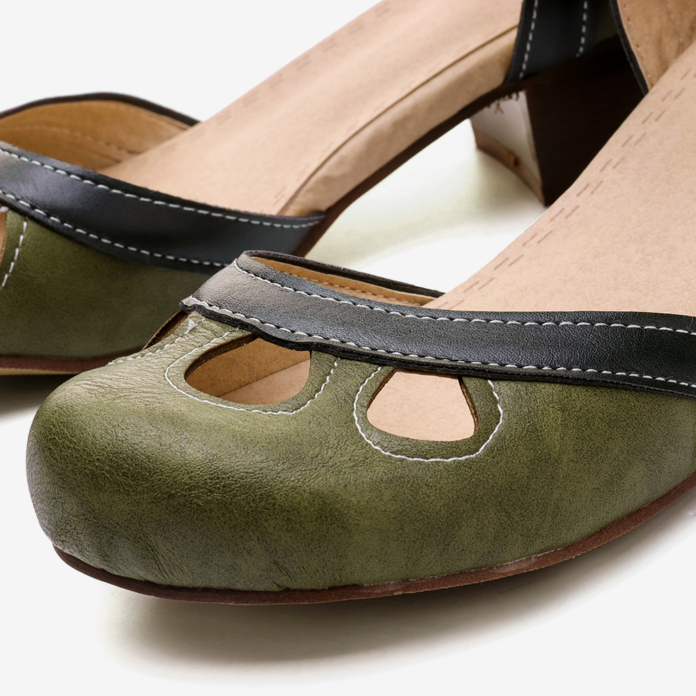 Women Hollow Out Color Stitching Plus Size Buckle Chunky Heel Casual Pumps