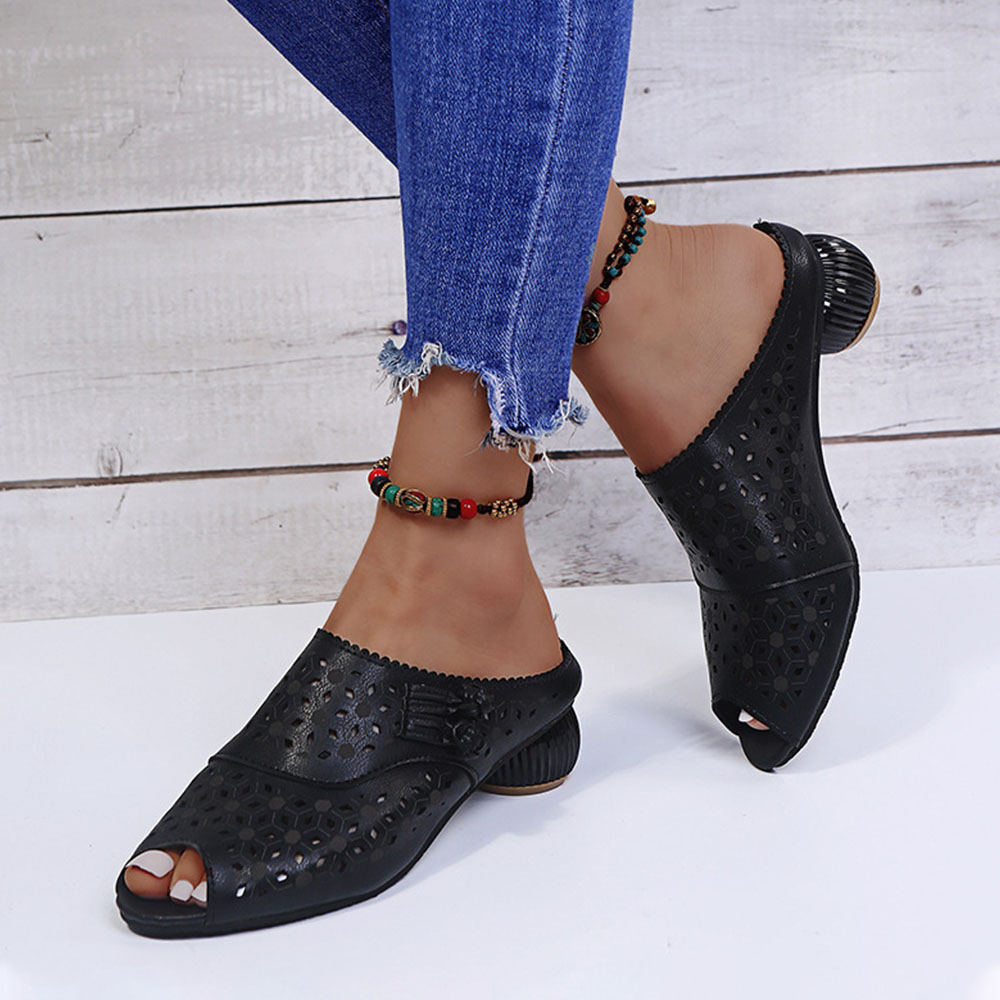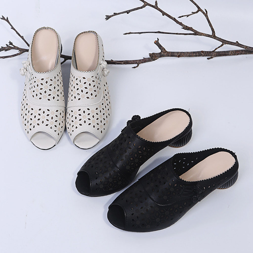 Women Hollow Out Low Heel Comfy Soft Sole Casual Sandals