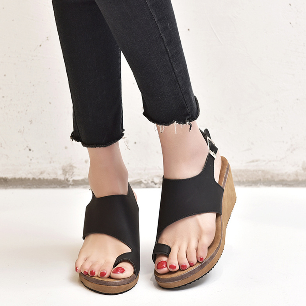 Women Large Size Buckle Strap Clip Toe Wedges Sandals