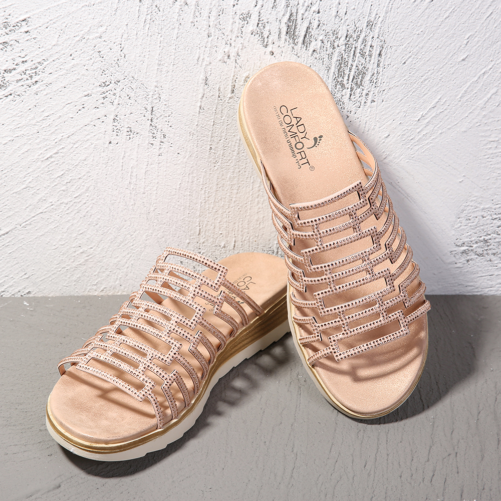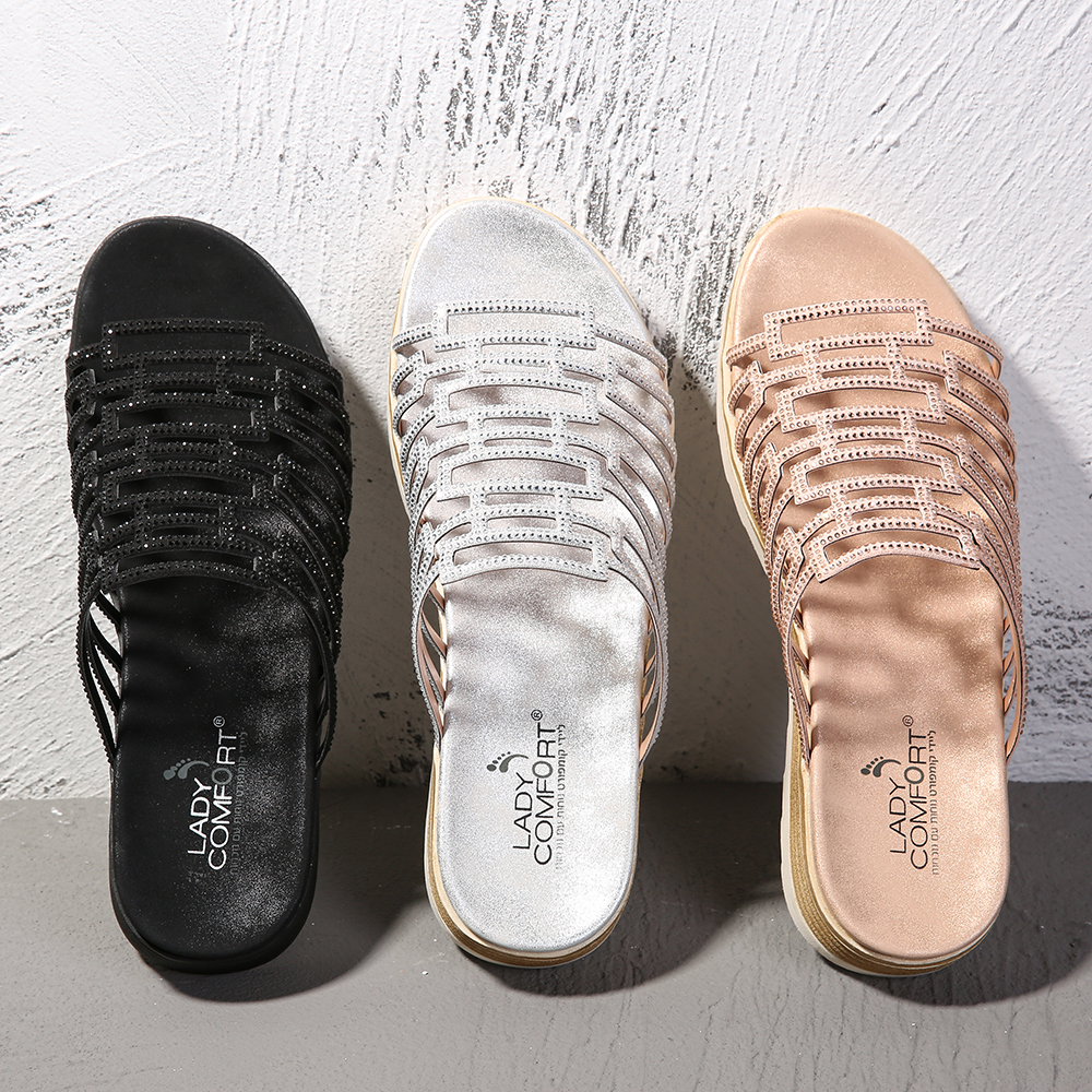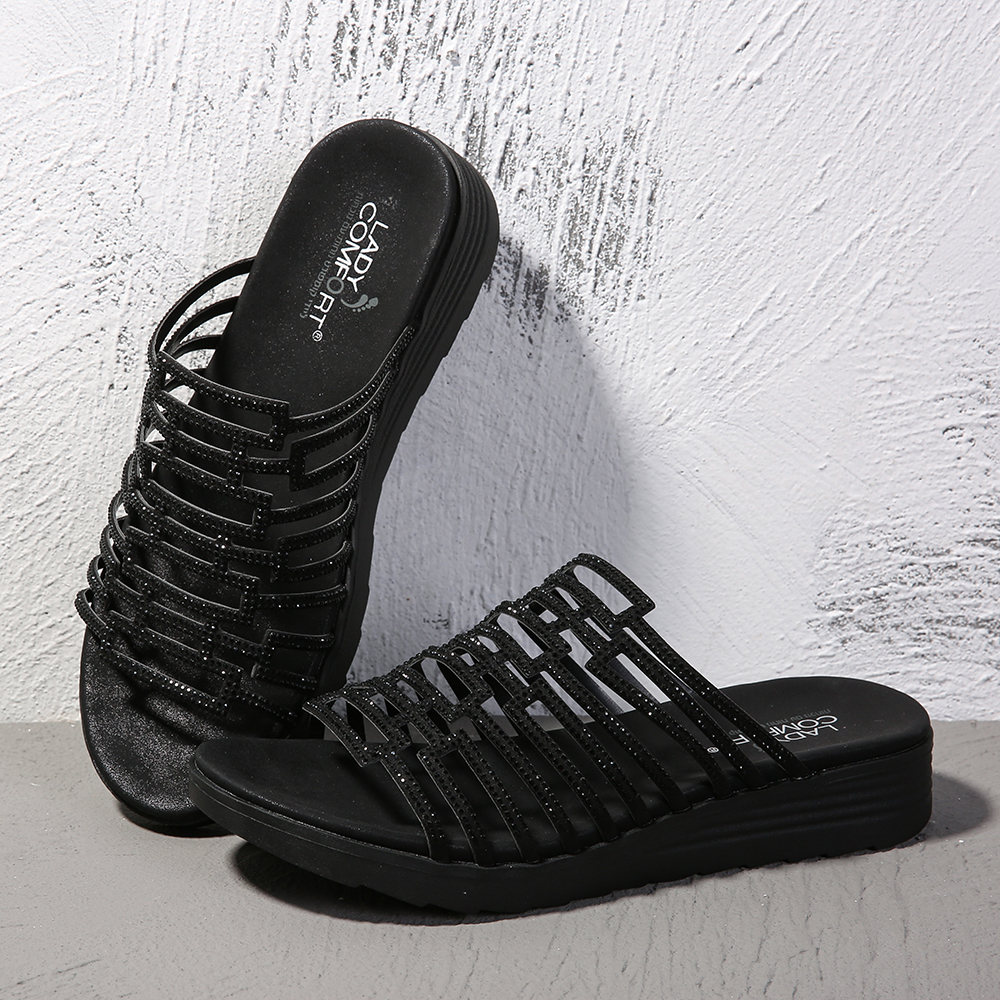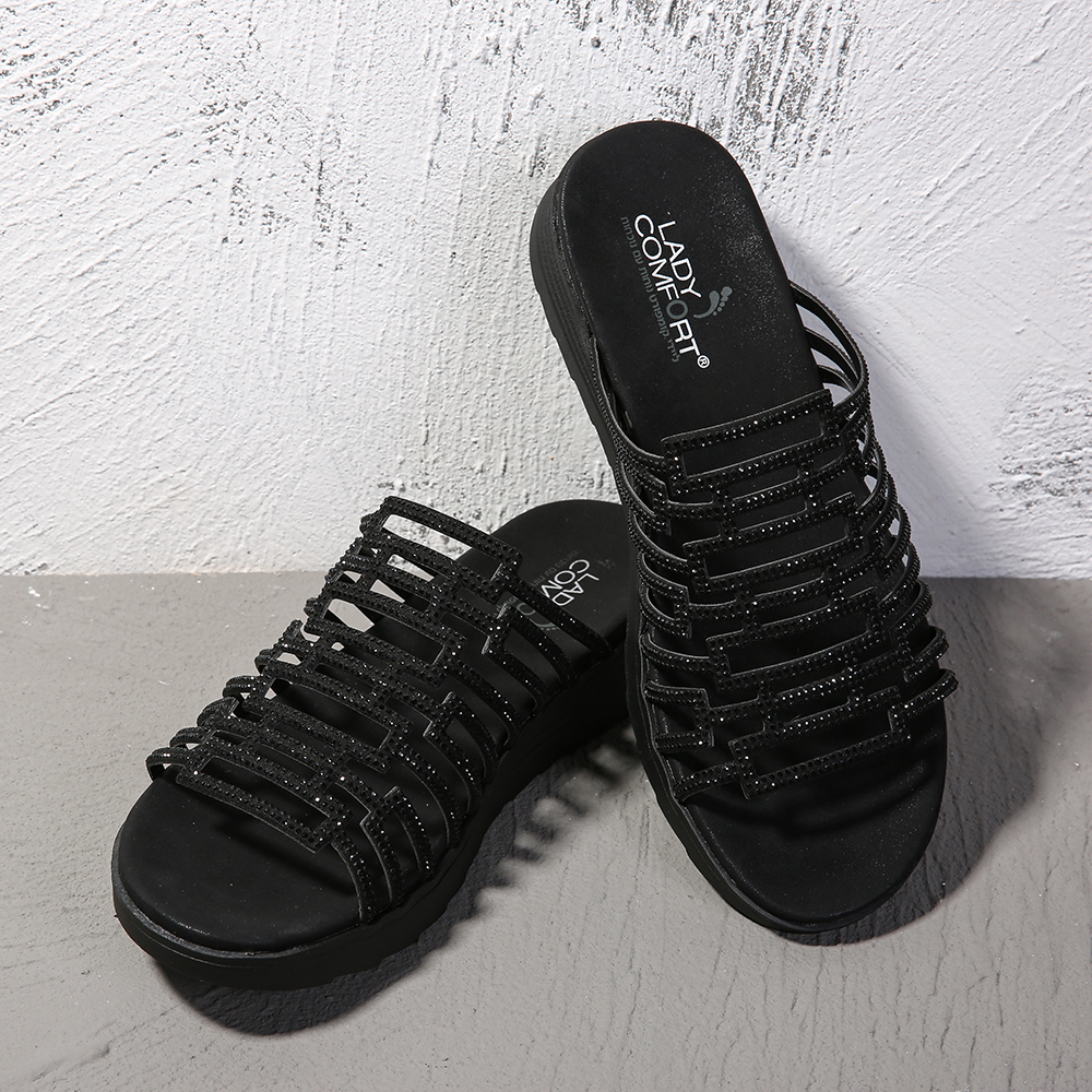 Women Rhinestone Decor Hollow Out Platform Casual Slippers