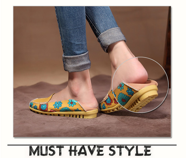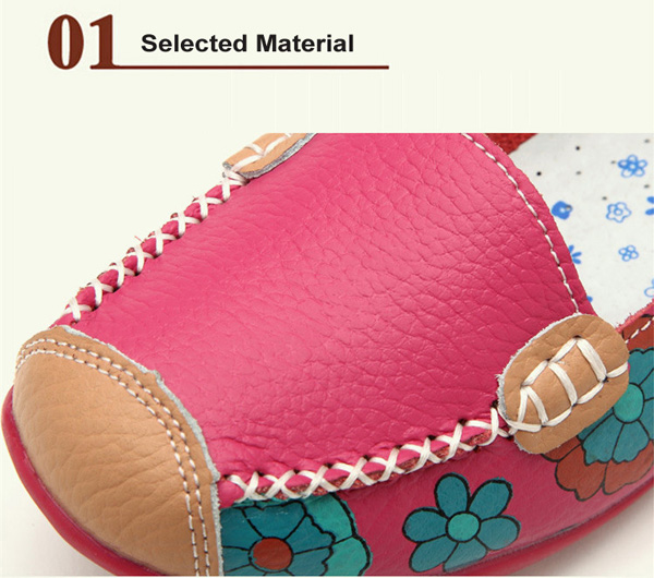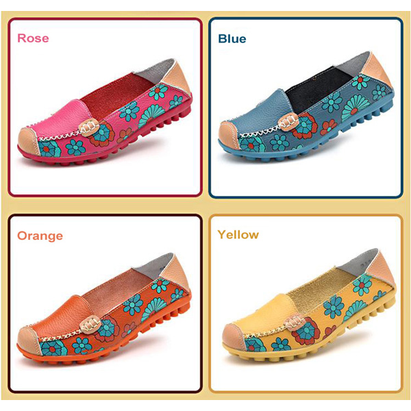 Big Size Women Flower Floral Leather Loafers Moccasins Flats Soft Ballet Shoes Round Toe Flats