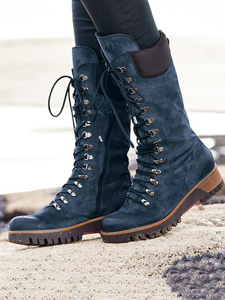 Plus Size Women Wearable Suede Side Zipper Mid Calf Combat Boots