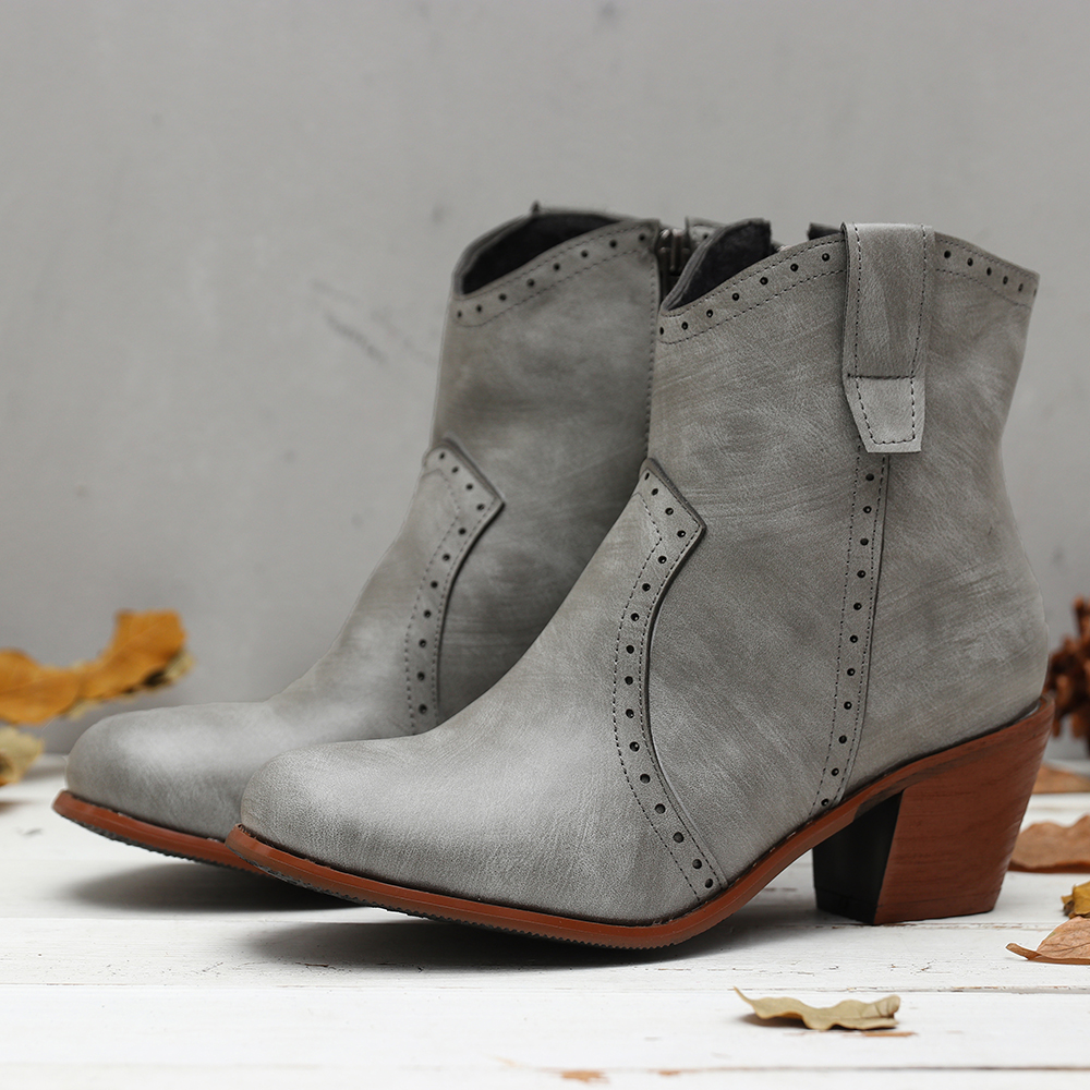 Women Casual Retro Pointed Toe Zipper Chunky Heel Ankle Boots