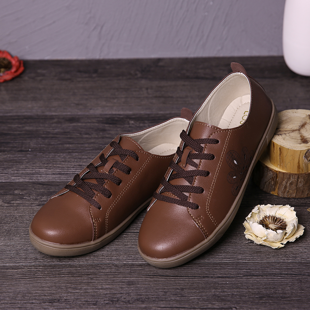 Closed Toe Hollow Out Lace Up Casual Flat Shoes