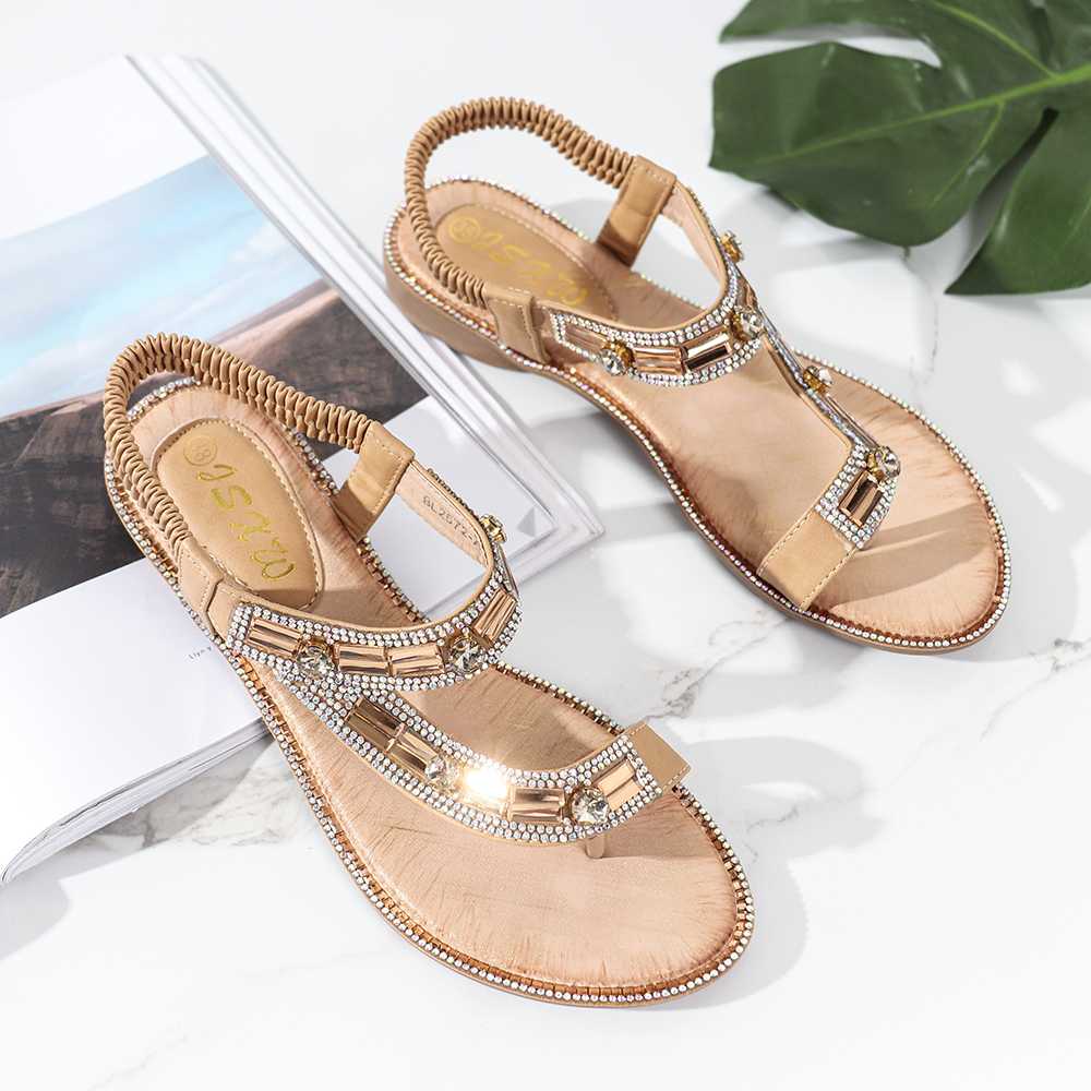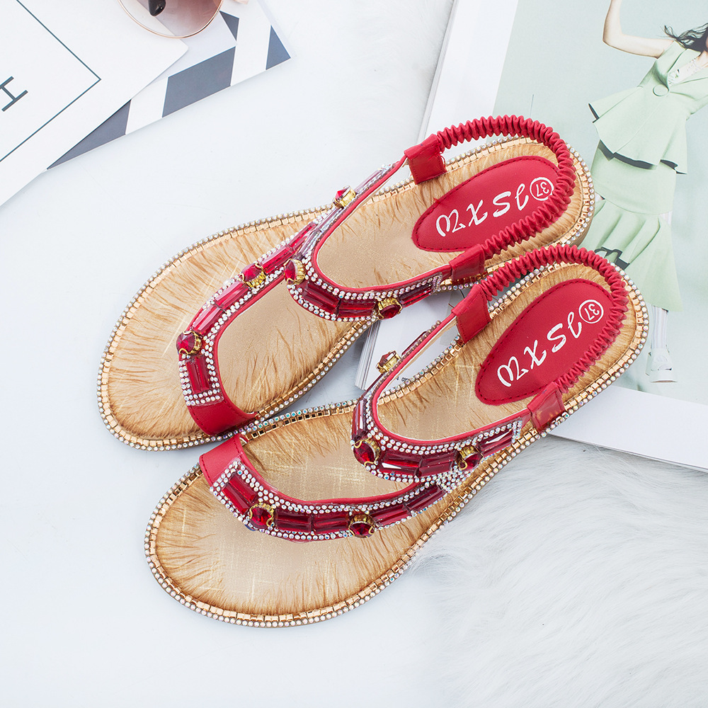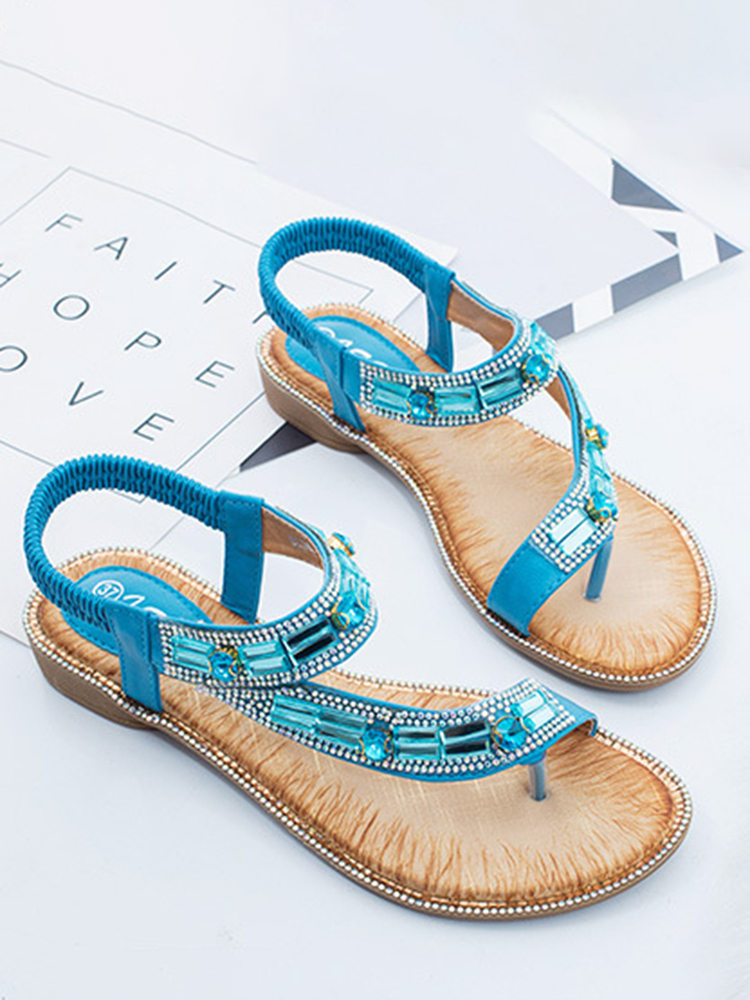 Women Fashion Rhinestone Bohemia Wearable Clip Toe Sandals