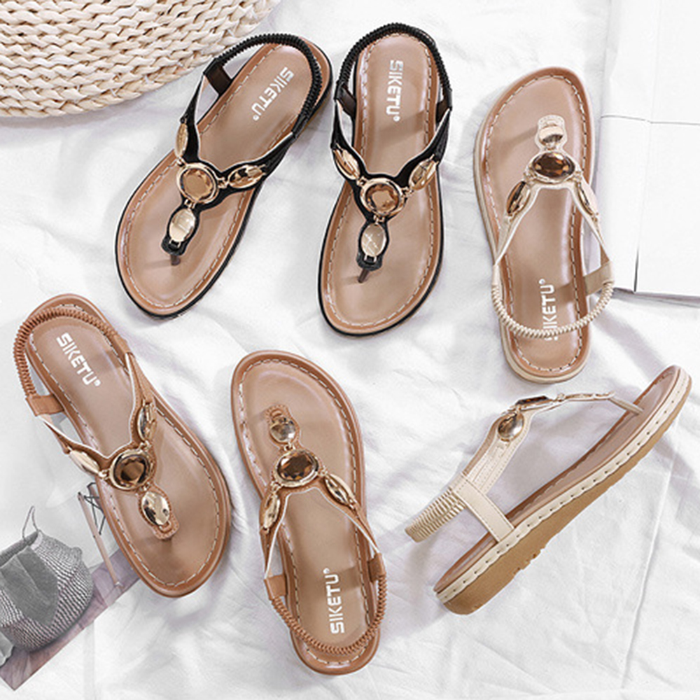 Women Fashion Metal Buckle Soft Beach Clip Toe Sandals