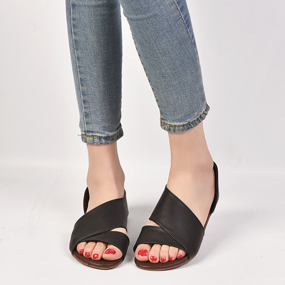 Women Retro Open Side Comfy Non Slip Slip On Flat Sandals
