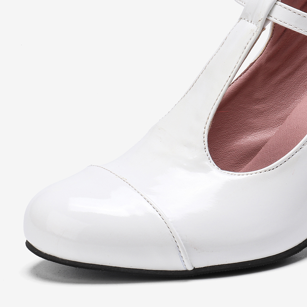 Women T-strap Geometric Graphic Chunky Heel Cutout Casual High Heels